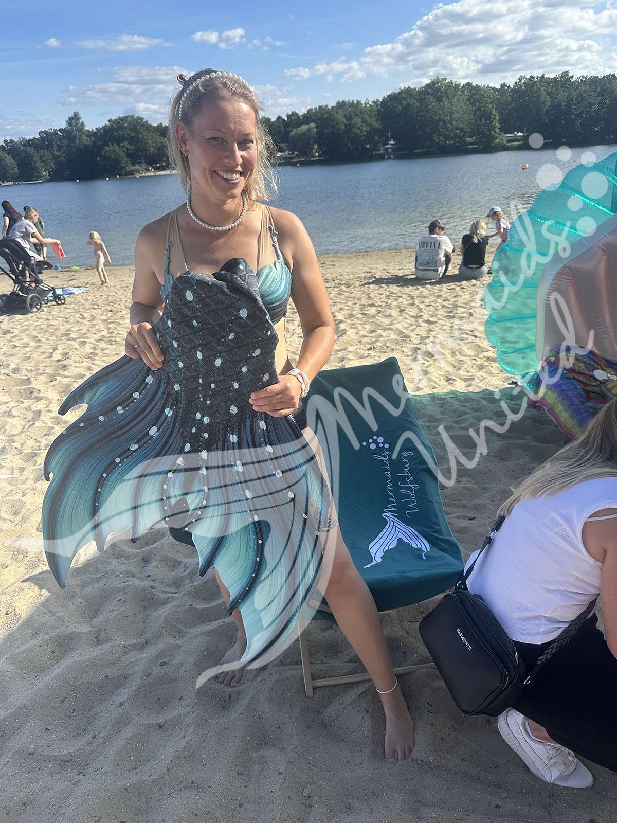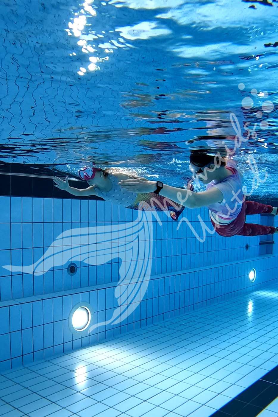 Nach der Verteilung von passenden Flossen, ging es für die Teilnehmer*innen mit Aufwärmübungen weiter, bevor sie im Wasser alles praktisch und mit viel Spaß umgesetzt haben. Es ist immer wieder schön, viele neue Talente zu entdecken und zugleich vertraute Gesichter vom letzten Jahr wiederzusehen. „Meine Teilnehmer*innen machten schnell Fortschritte und wurden von der Magie des Mermaiding verzaubert. Ein rundum tolles Erlebnis und ich freue mich schon jetzt auf nächstes Jahr!“